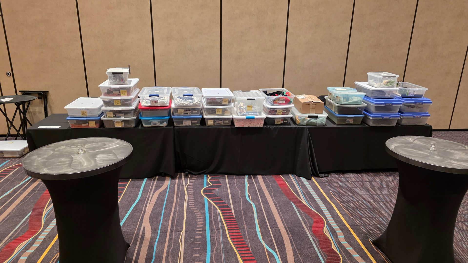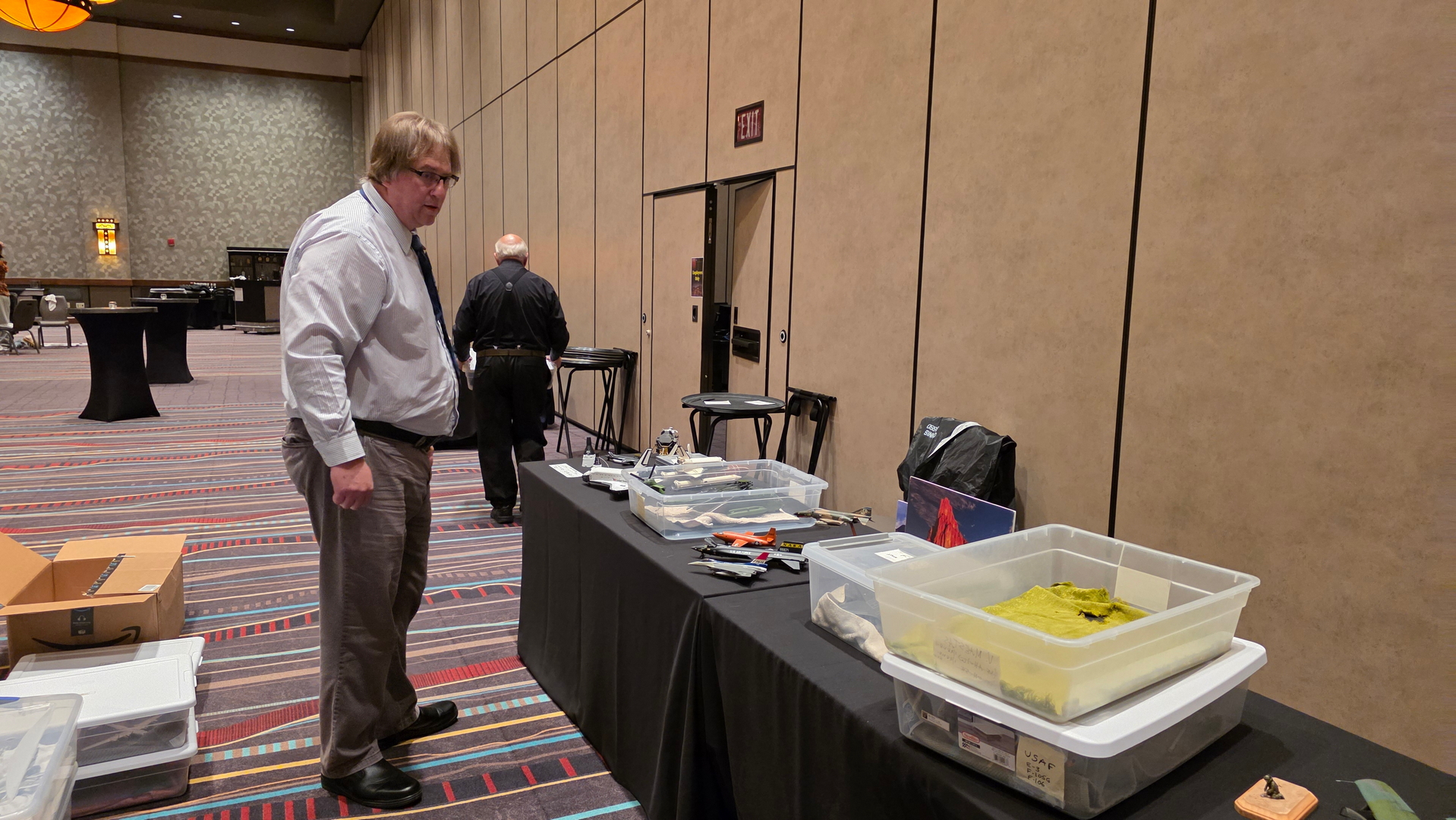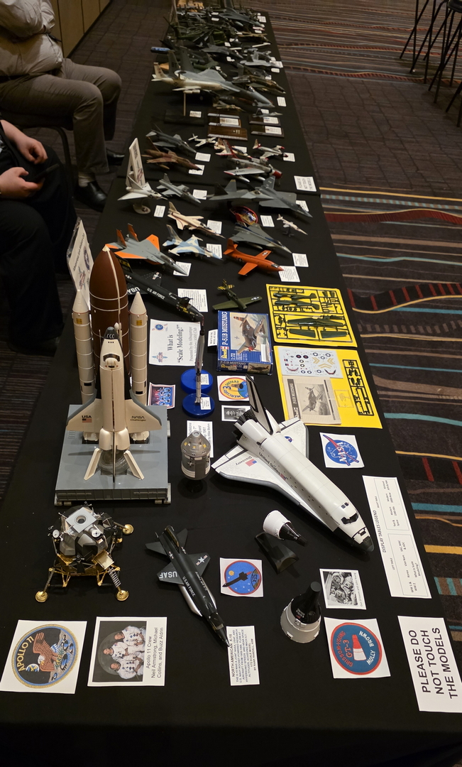 We displayed 145 total models on six large tables in two groups of three (probably 36 total feet). This was both a new record for an AF Ball event and also a new record for any ASM model display. This display beat out the previous mark at the Albuquerque Comic Expo display back in 2014. We brought 41 tubs and boxes of models that filled three vehicles. We almost used everything that we brought. Like last year, we were located in the event ballroom against the back wall facing the stage, and the attendees all passed by the display as they lined up to purchase beverages at each end of the back wall. So – we had lots of lookers and discussions with the attendees throughout the event. Pictures 1-17 show the set-up and pics 18‑22 show portions of the event.