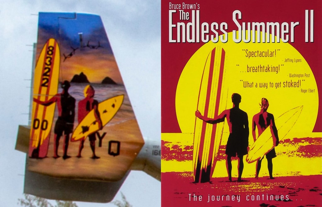 Unfortunate news for VMM-268 at MCAS Kanehoe, HI, as their command staff just got fired.  Doubly unfortunate as they happen to have some of coolest tail art in the U.S. military.  Check out how the serial number and aircraft number are painted on the surfboard.