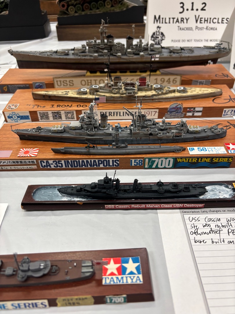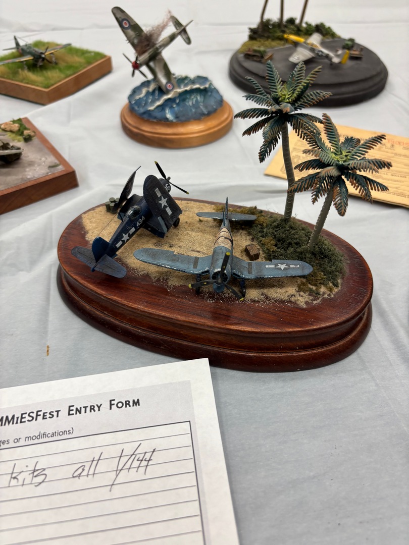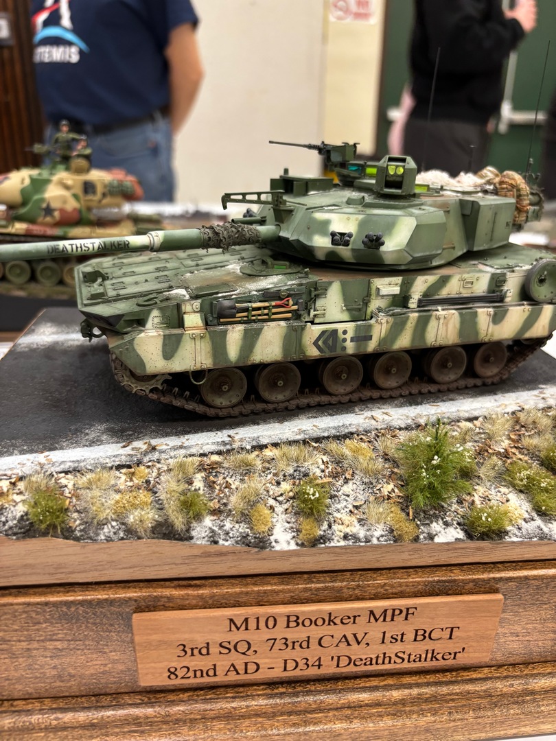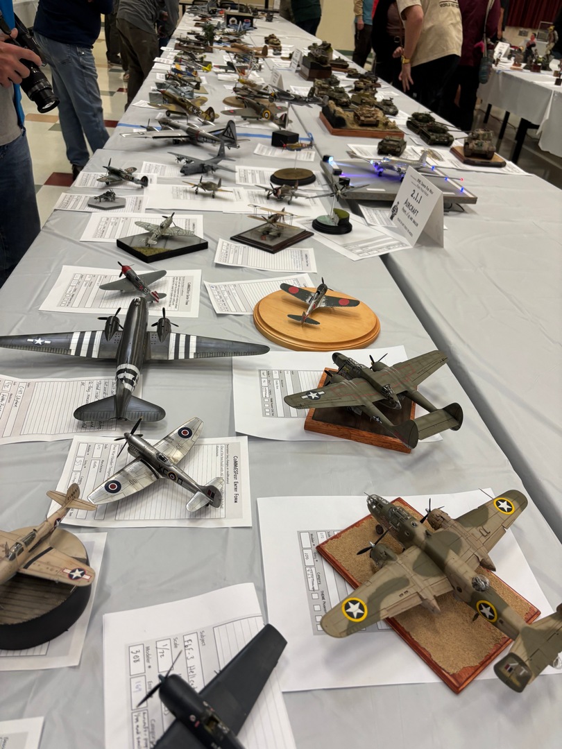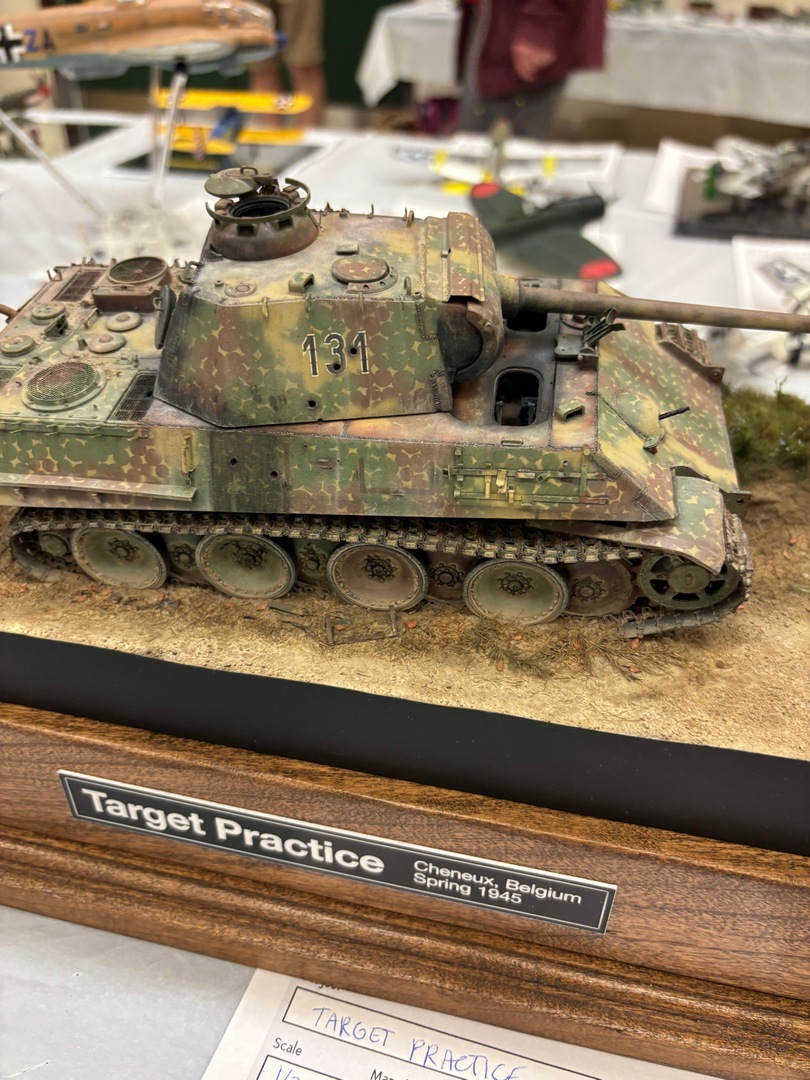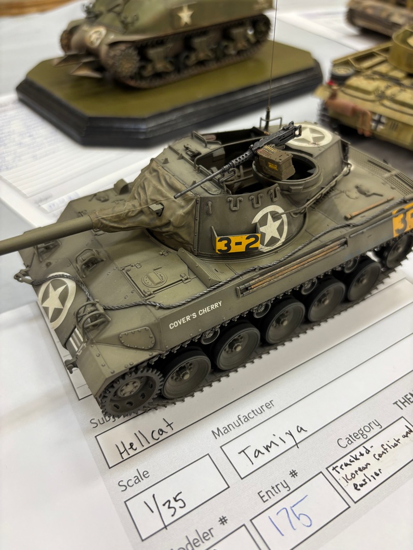 Jim had been there last year, Zach and I were first timers. We arrived at the show to find a smallish venue, but the work being exhibited was certainly top notch. The vendor area was also on the smaller side, but there were plenty of great deals to be found. I picked up a Tamiya 48th Corsair, but missed out on a 1:1 scale (real) tailwheel from a 109. Steve Munsal who owns/runs the aftermarket armor company Value Gear was there, we chatted with him a little more about him coming out to one of our club meetings later this year. We placed our models out on the tables in the various categories, then spent a little more time looking at the displayed models and taking stock of our chances at awards. Then it was time……..